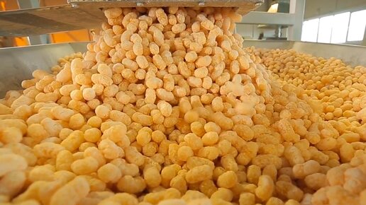 Как делают любимый многими десерт - кукурузные палочки. Процесс приготовления на производстве