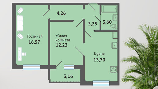 Видеообзор 2-комнатной квартиры 56 кв.м.