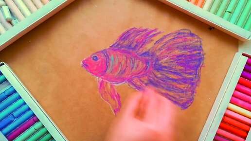 Как нарисовать красивую БОЙЦОВУЮ РЫБКУ ПЕТУШОК пастелью | Простой и быстрый урок рисования