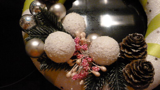 Шишки, шарики и ленты! Красивый веночек к новому году!