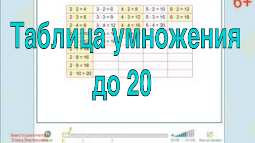 Таблица умножения в пределах 20