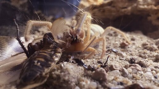 Сольпуга против ОГРОМНОГО ТАРАКАНА. Кормление сольпуги.
