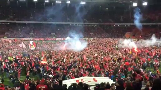 Все поле заполонили болельщики.Победа команды СПАРТАК.