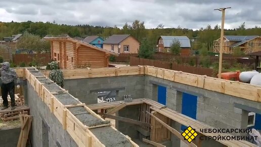 Заливка и уплотнение бетона для армопояса