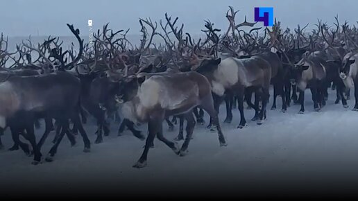 Видеорегистратор запечатлел перегон огромного стада оленей в Воркуте