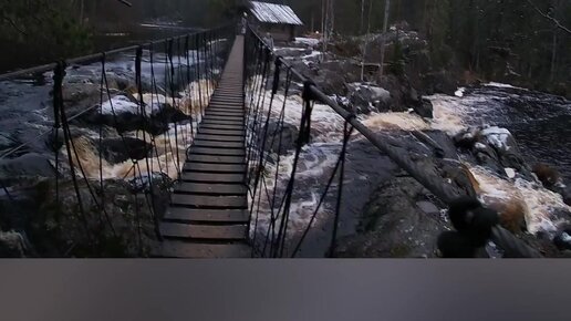 Парень прошёлся по деревянной лестнице над опасным водопадом