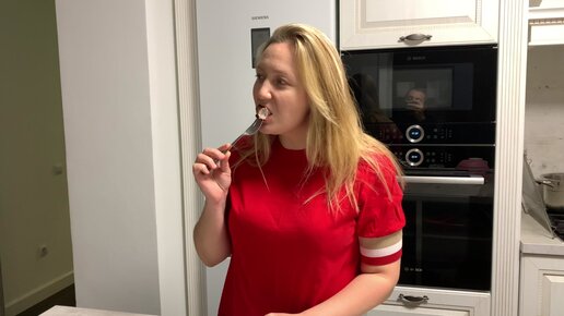 Вкусный шашлык за 15 минут , девушка пробует шашлык