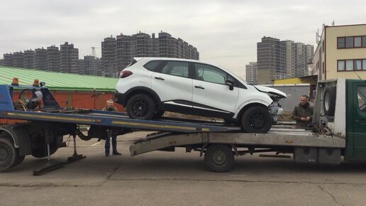Погрузка аварийного автомобиля Renault Kaptur на эвакуатор