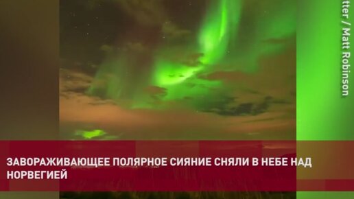 Завораживающее полярное сияние сняли в небе нед Норвегией.