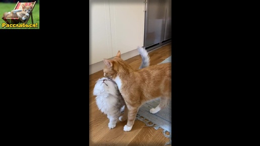 В первую встречу коты не нашли общий язык, но потом полюбили друг друга, как родные