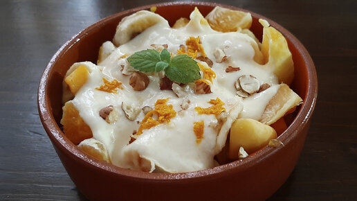 Вкусный фруктовый салат с йогуртом и орехами. Просто, быстро, полезно.