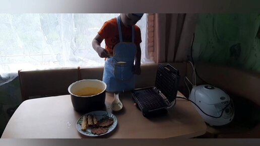Малыши готовят вафли в электро вафельнице! Молодое поколение и старый проверенный рецепт! Мише 3 годика, Стёпе 1,5 :)