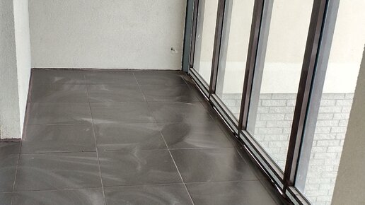 Балкон 5,5 метров с витражным остеклением Подняли пол и выложили плитку