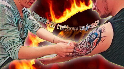 Первый tattoo-рукав ✪ Иисус с ангелом и роза с живыми каплями