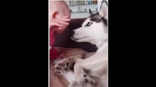 Хаски хорошие няньки для детей. Милые видео с животными.