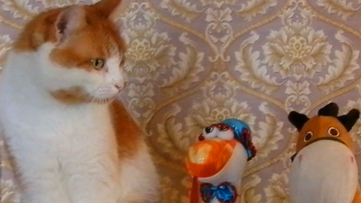 Кот слушает песню.