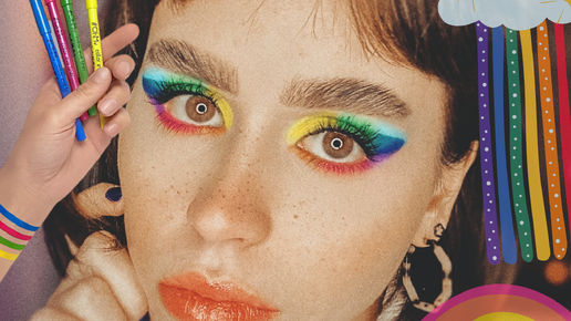 Яркий креативный макияж в радужных тонах карандашами от Lamel и тенями с AliExpress