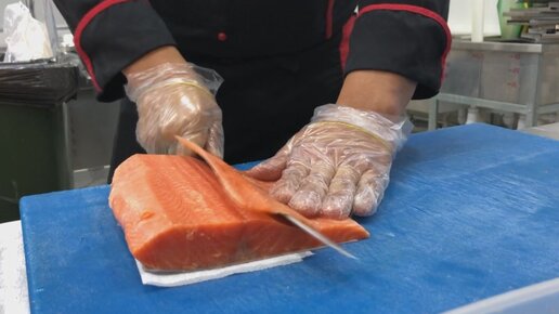 Нарезка лосося для роллов и суши🐟🔪