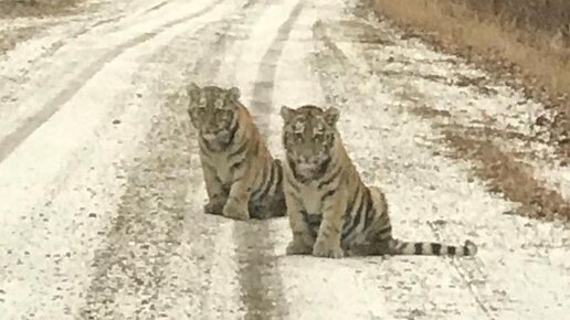 Двух очаровательных тигрят встретили на дороге на севере Приморского края
