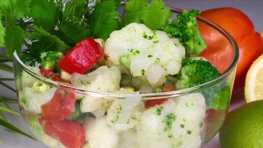 Теплый салат с брокколи и запеченным перцем