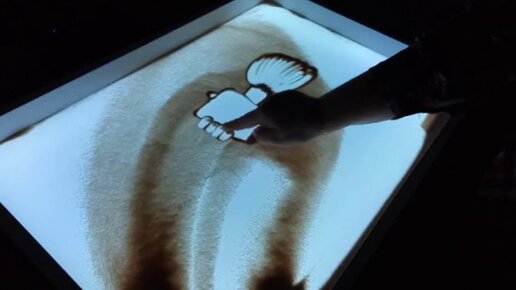 Рука со стаканом - рисунок, созданный на песке