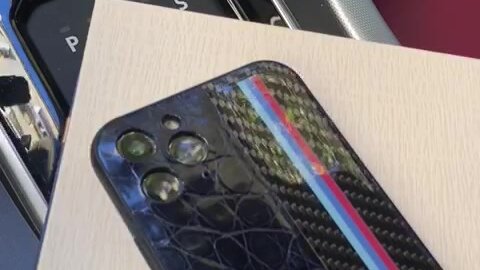Кожаный чёрный карбоновый чехол с логотипом BMW Performance Mobcase 1248 для iPhone 11 Pro Max