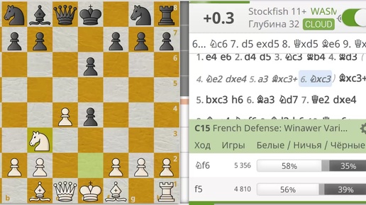 Алехин мастерски обхитрил Нимцовича в варианте Винавера французской защиты (Блед, 1931)