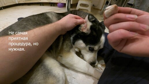 Ай, Ухи, папа, Ухи болят. Показываю Как почистить и обработать уши у Хаски.