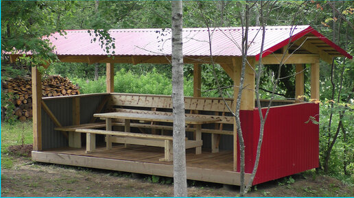 Беседка из бруса 3 на 6 стол и лавки своими руками