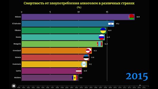Смертность от злоупотребления алкоголем за последние 30 лет.