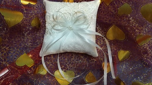 Подушечка для колец на свадьбу. Как я ее шила и украшала
