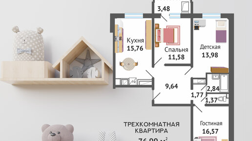 Видеообзор 3-комнатной квартиры 77 кв.м.