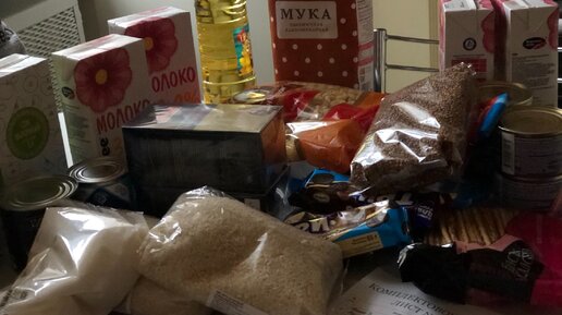 Показываю какие продуктовые наборы выдают многодетным семьям в Москве.