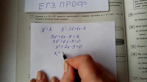 Находим абсцисс точки касания на графике, 7 задание егэ