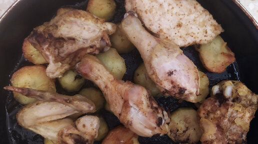 Просто, вкусно и дёшево! Рецепт приготовления картошки и курицы в духовке