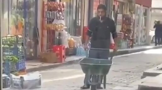 Кот преградил рабочему дорогу, но тот не стал его прогонять и терпеливо подождал, пока животинка напьется из лужи. Один попил,