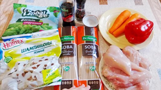 Соба гречневая лапша с курицей и овощами/ Очень вкусно!
