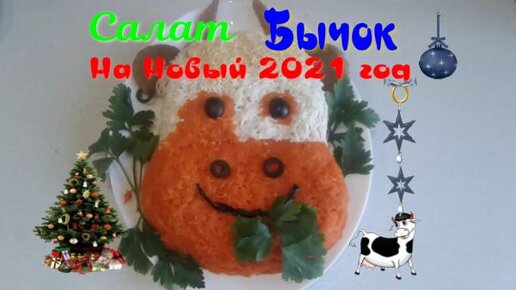 Салат Бычок/Салат на Новый 2021 год/Салат в виде Бычка/