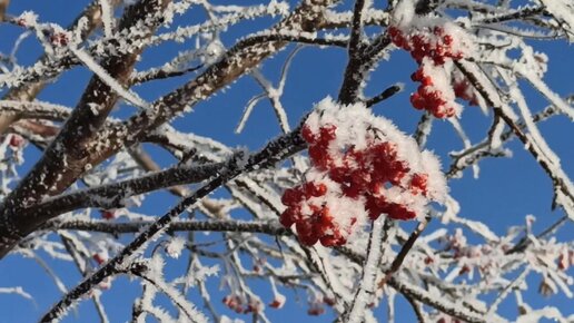 Красивые ягоды на заиндевелых деревьях