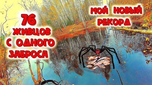 ✔ Поймал 76 живцов с одного заброса Мой новый рекорд Рыбалка на паук - подъёмник