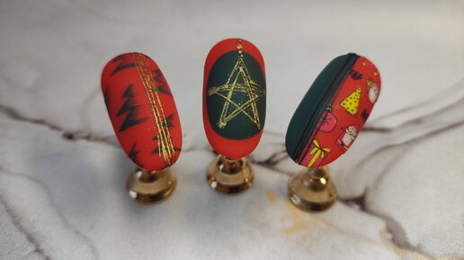 Новогодние принты на ногтях