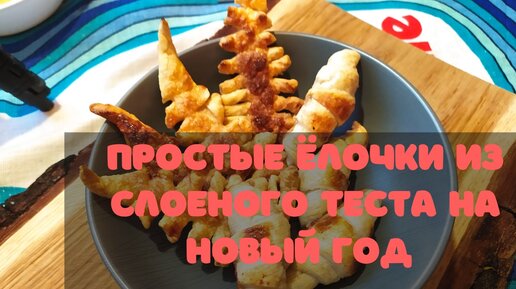 Легкие сладкие закуски в форме елочек из слоеного теста. Детям понравится