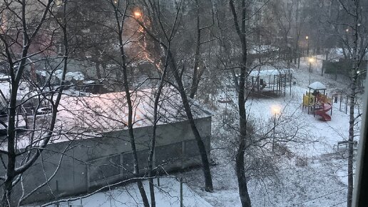 Красиво. Первый снегопад в Москве замедленная съемка