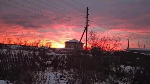 Красивый зимний закат,как приятно жить в деревне