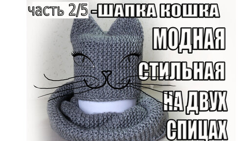 Далее: Шапка спицами на ДВУХ спицах с ОЧАРОВАТЕЛЬНЫМИ ушками. Часть 3/5