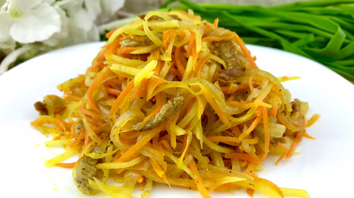 Праздничный корейский салат со свининой и овощами. Новогоднее меню 2022