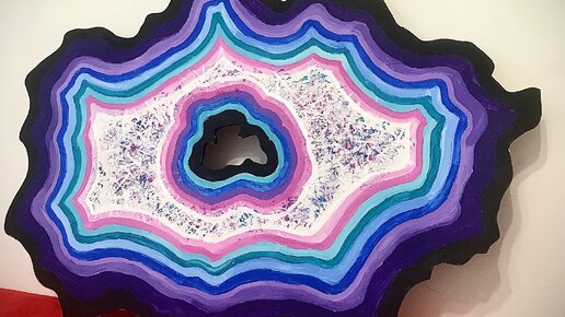 Сделал Роспись под срез камня и залил смолой, добавил стеклянной крошки.