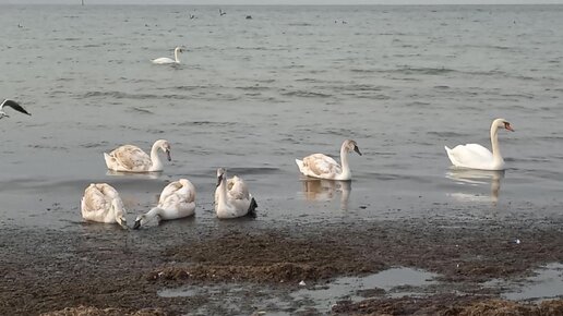 Анапа Центральный пляж: белые лебеди и чёрная грязь
