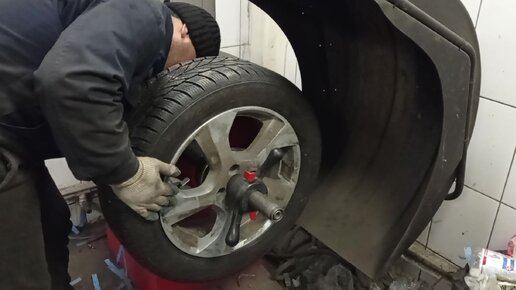 Балансировка зимних шин на оборудовании. После монтажа резины на литой диск от Лады.