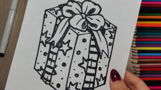 Подарок рисунок. Поэтапное рисование. Новогодние рисунки